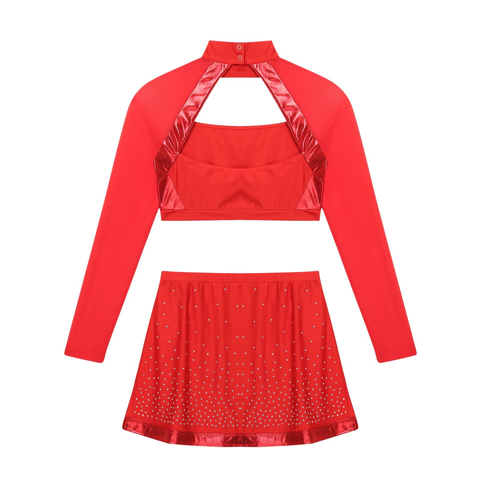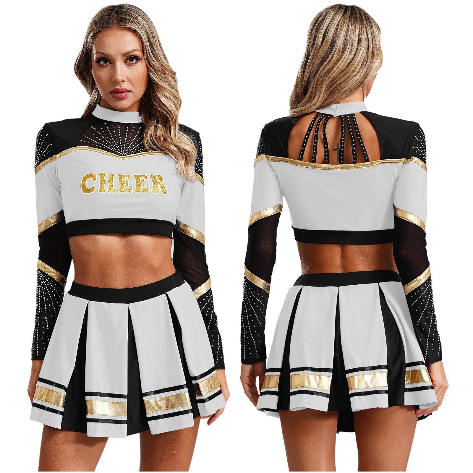 2 piece cheer leader dance crop top and dance skirt for women, classic style and bold colors make you more fashionable.