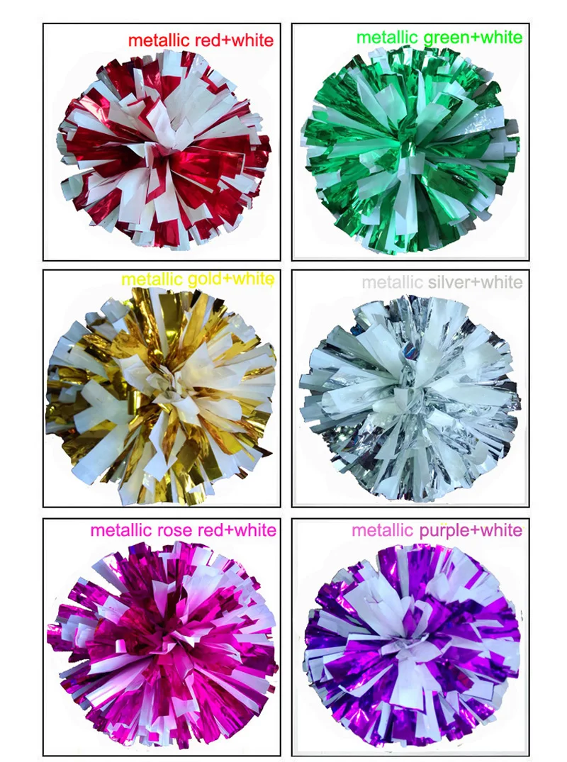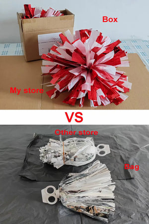 2Pcs Cheerleader Pom Poms with Ring Handle – Red & White, 32cm