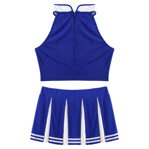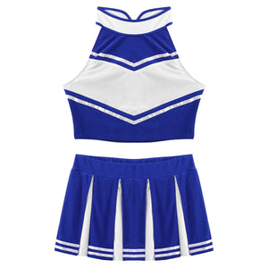 Women Adults Cheerleading Uniform Sleeveless Crop Top Pleated Skirt Outfit: High School Music Party Halloween Cheerleading Costume